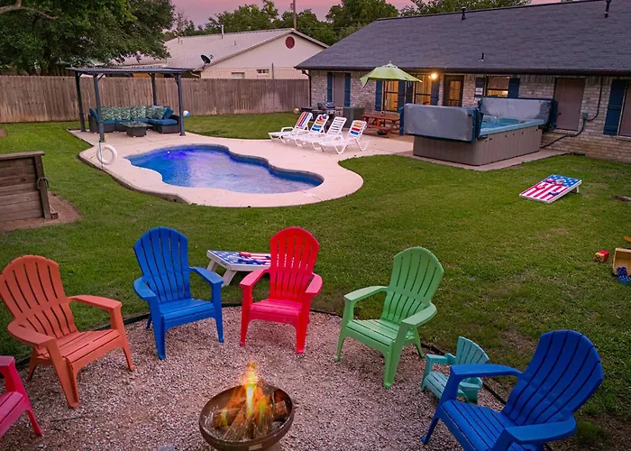 **Welcome to 5 O'Clock Somewhere - Hot Tub Pool Fire Pit Fredericksburg, a delightful retreat nestled in the heart of Texas Hill Country. This charming getaway harmoniously combines rustic elegance with modern amenities, making it an ideal sanctuary for relaxation and adventure alike.**
